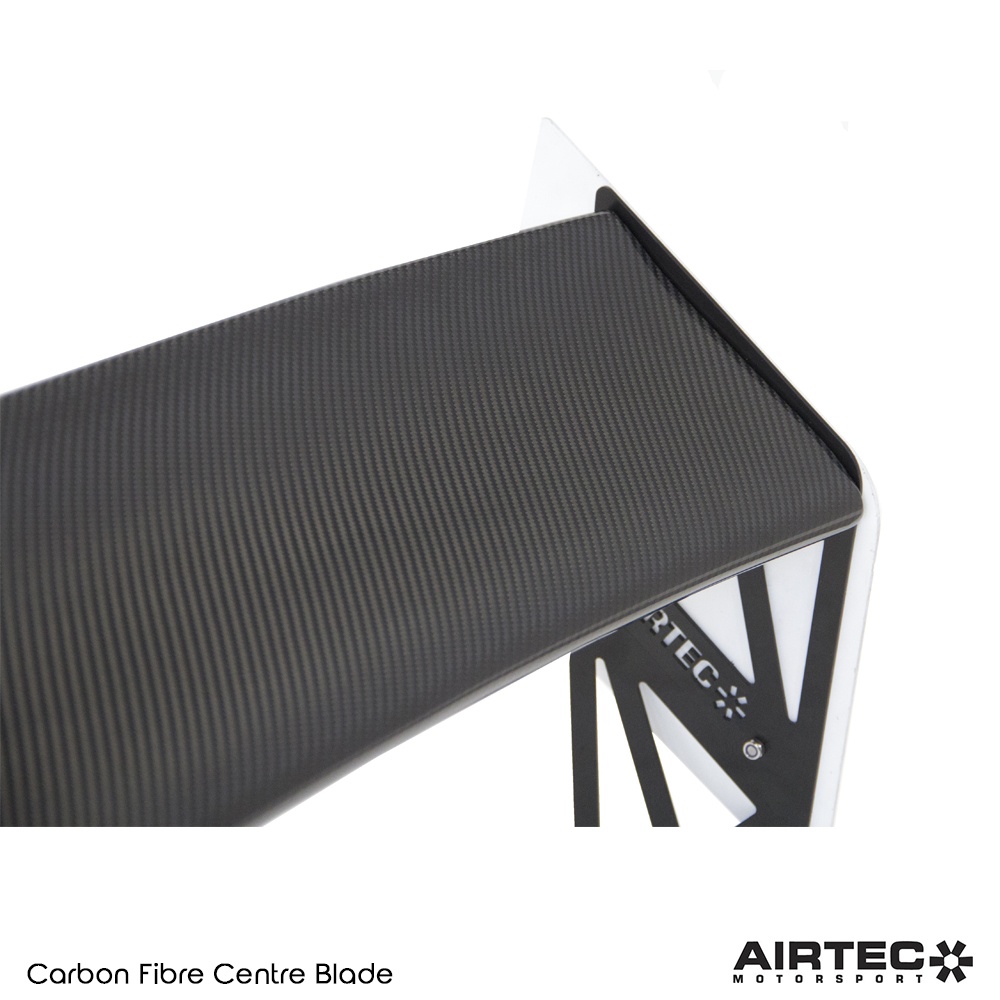 The comprehensive wing kit includes bespoke laser-cut and powder coated AIRTEC Motorsport brackets, unique sculptured alloy end plates, a fibreglass centre blade section and all fixtures and fittings, including instructions and a drilling template to insure accurate fitment.